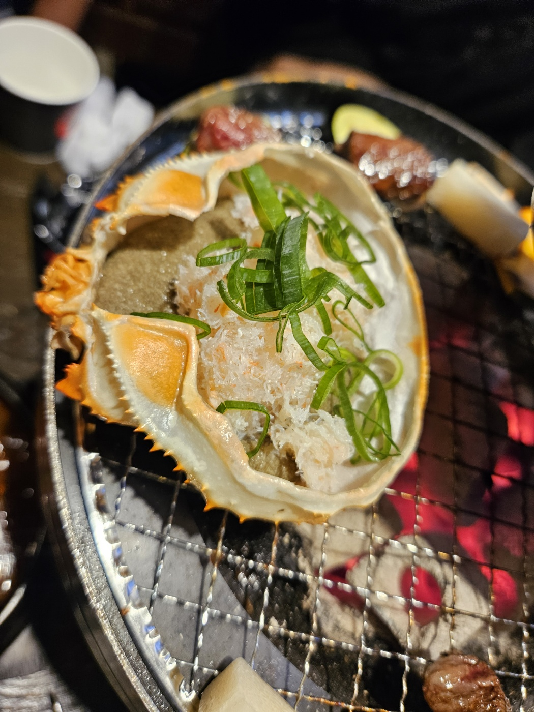 구운 게장과 게살을 섞어서 고기랑 같이 드시라고 하셨어요